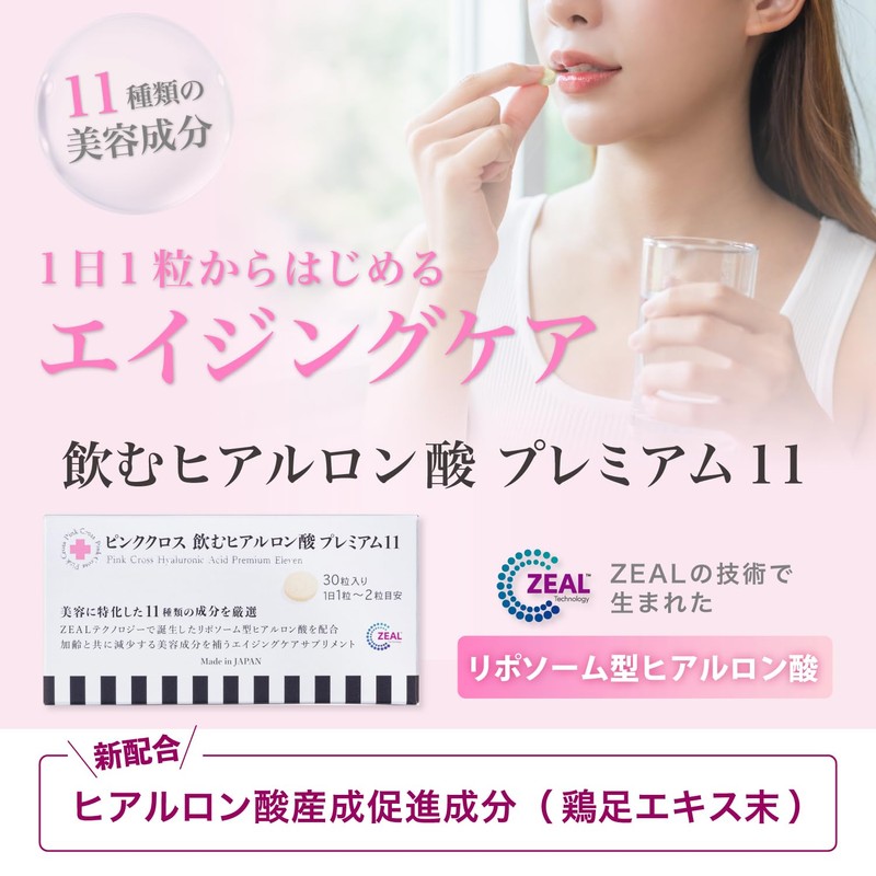 【 ピンククロス 飲む ヒアルロン酸 プレミアム11 】エイジングケア成分10050mg 高純度 リポソーム 型 ヒアルロン酸 美容 サプリ メント リポソーム 型 ビタミンC コラーゲン エラスチン コンドロイチン プラセンタ エイジングケア GMP認定工場 乾燥肌