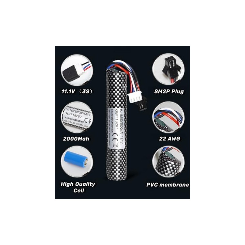 11.1V 2000mAh Airsoft Batería SM2P Plug con sm2p a Tamiya Plug Compatible con Airsoft Batería Recargable