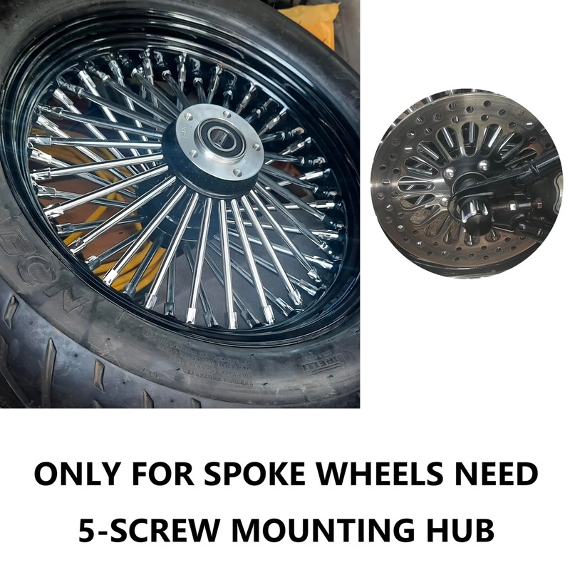 FITMENT: ONLY FOR SPOKE WHEELS WITH 5-SCREW MOUNTING HUB.