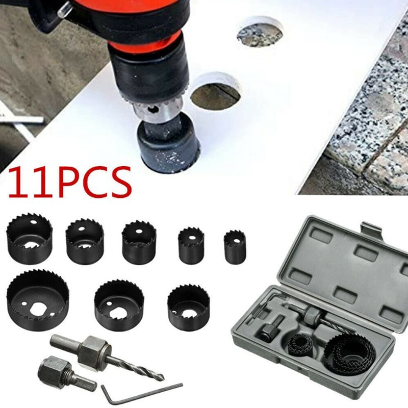 11-Piece Hole Saw Set, Bi-Metal Hole Saw, 11 Pieces Hole Saw Set with 8 Saw Blades, 1 Drill, 1 Mounting Plate, 1 Hex Key, Ideal for Drilling Softwood, PVC Panel and Plastic Plate