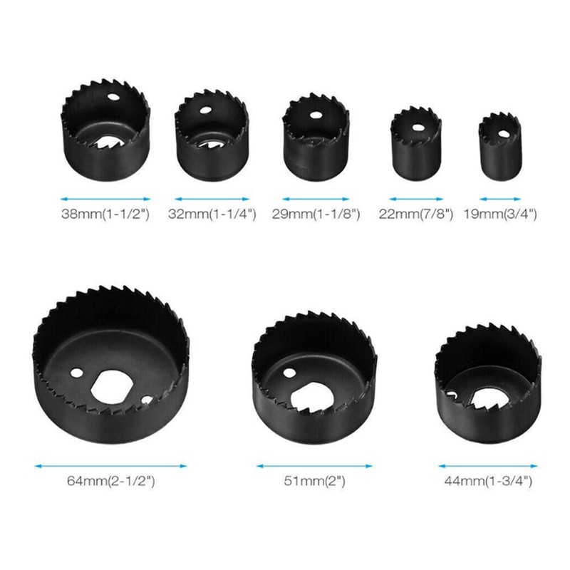 - 11-piece accessories: the hole saw kit contains 1-piece mandrel, 1-piece storage case, 1-piece Allen key and 8-piece saw blades size: 19 mm, 22 mm, 29 mm, 32 mm, 38 mm, 44 mm, 51 mm, 64 mm, which meet your different requirements.
