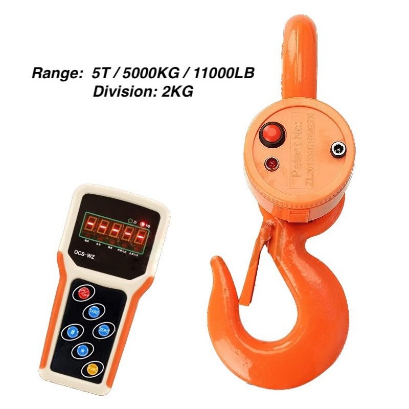 - Crane Scale has a measuring range up to 5000kg / 11000lb, division of 2kg, suitable for weighing large and bulky items