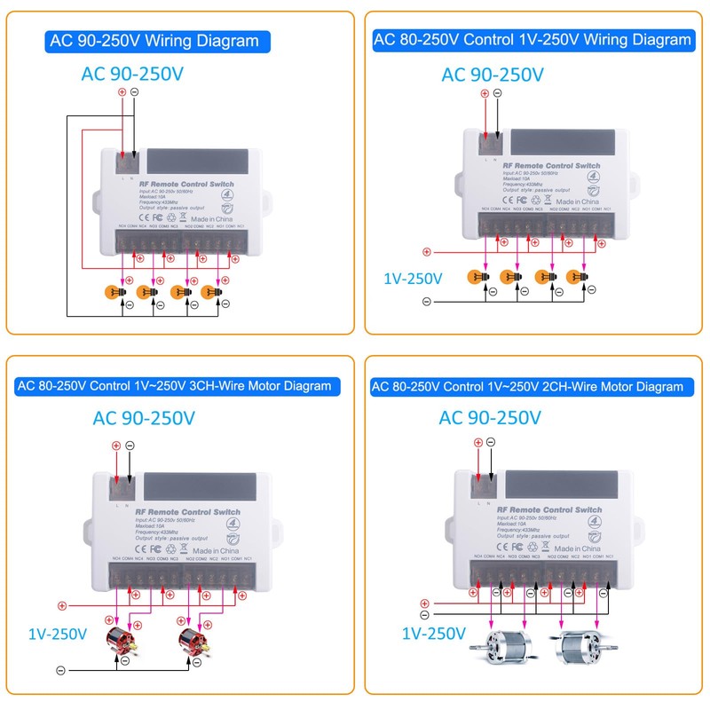 - 🏡【 wide applications range】The remote switches are used in industrial homes, farms, factories, offices, laboratories, supermarkets fields etc. Other applications, such as wireless monitoring equipment, Power switch, small motor, buzzer, electromagnets, light, electronic power supply equipment,, Motors, Fans, Cameras, Video signals, Audio signals, electrically operated Doors/ Locks/ Windows, ventilation devices, signal transmission.