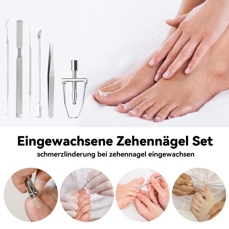 Das Zehennagel-Kit enthält ein komplettes eingewachsene Zehennägel Set an Werkzeugen, mit denen Sie Ihre Zehennägel zu Hause trimmen können. Hochwertige Materialien zur Wiederherstellung der Fußgesundheit – investieren Sie in Nagelpflegeset-Qualität.