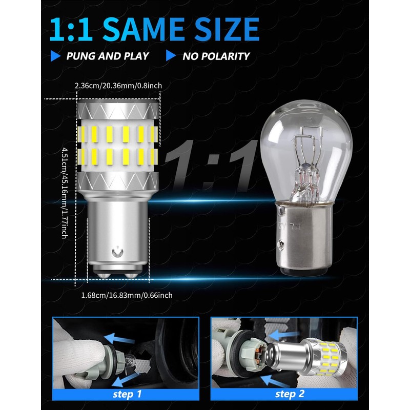 - 【Easy to installation】Non-polarity design, just plug and play. When make sure same base as old bulb 1157 2057 2357 7528 single contact bayonet base, then push and twist 1157 LED bulb into the socket, make sure bulb contact with socket well.