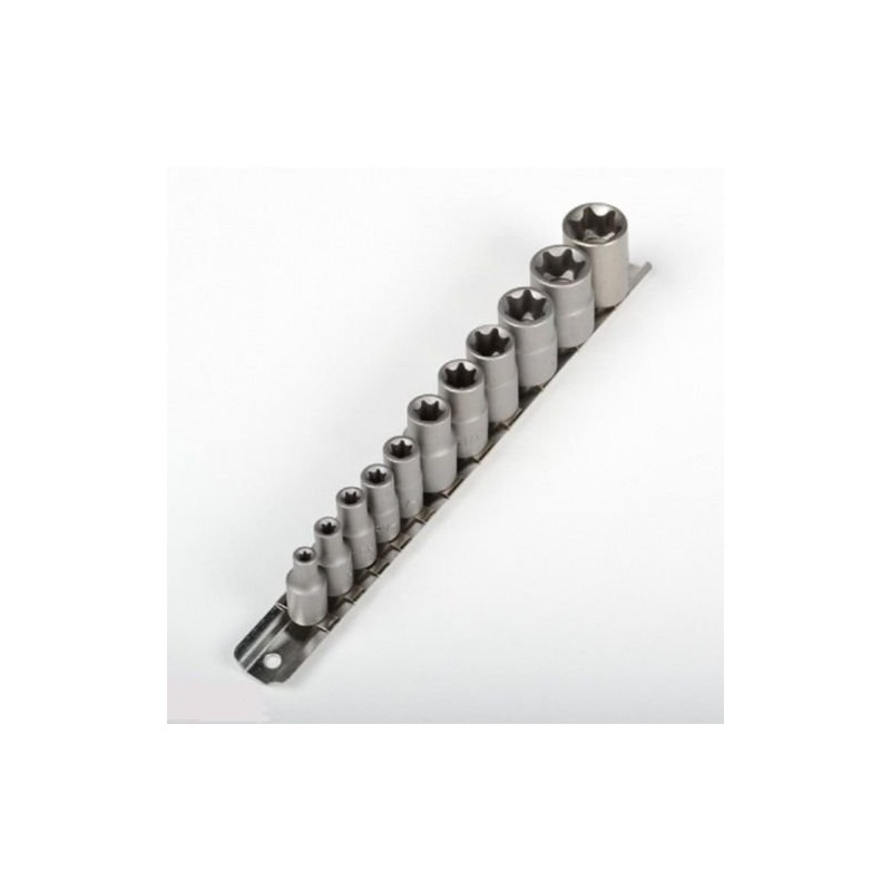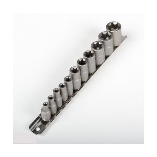 11pc Female E Torx Torque Star Socket Bit Set on Snap in Rail E5-e18