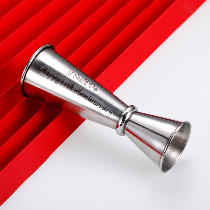 - ❤11th Anniversary Steel Jigger Gift Idea ❤ Congratulations!11 years, 4,018 days 96,432 hours, 5,785,920 minutes, 347,155,200 seconds and still counting.I still do.eleven years of love and each other's lives are undoubtedly and unforgettable.Choosing a gift is a challenge, This jigger is made of stainless steel,symbolizing that after eleven years of wear and tear, it has both toughness and resistance to wind and rain.This 11 years anniversary jigger makes romantic gifts for women men him her.
