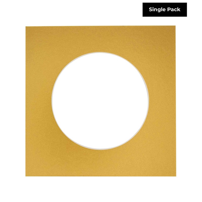 11x11 Mat Bevel Cut for 7x7 Photos - Precut Metallic Gold Circle Shaped Photo Mat Board Opening - Acid Free Matte to Protect Your Pictures - Bevel Cut for Family Photos, Pack of 1 Matboard