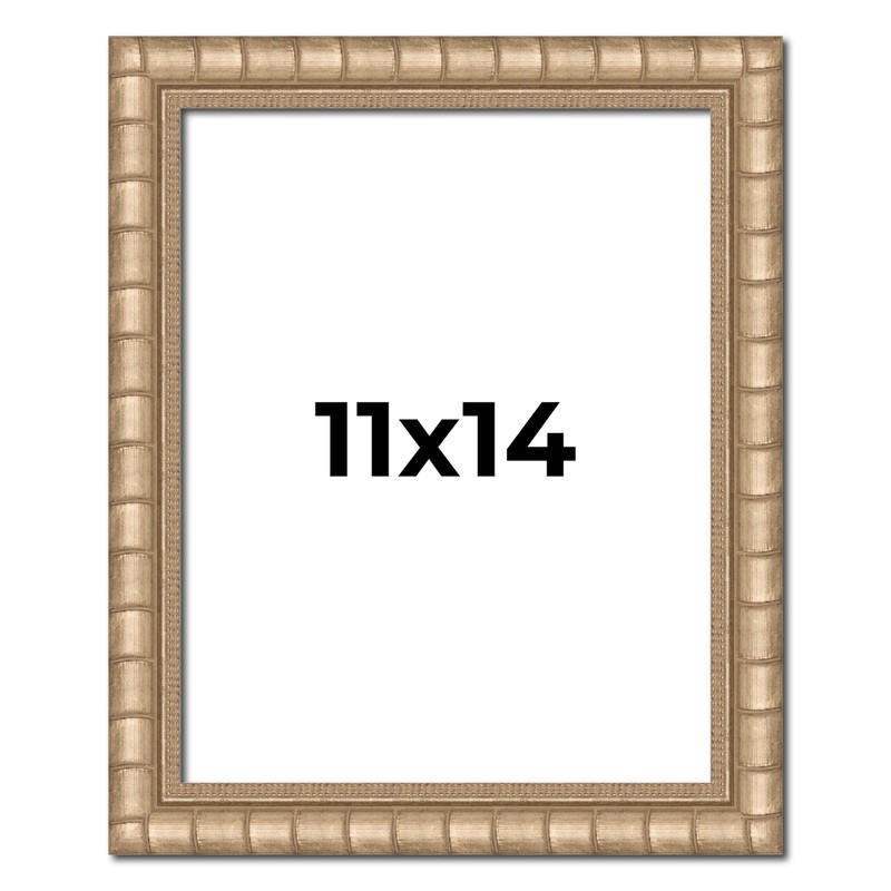 11x14 Frame Silver Bamboo Solid Wood Picture Frame | 1.5 Inch Moulding Width | Interior Frame Depth 0.5 Inches | Beechey Bamboo Frame with UV Acrylic Plexiglass, Foam Board Backing & Hanging Hardware