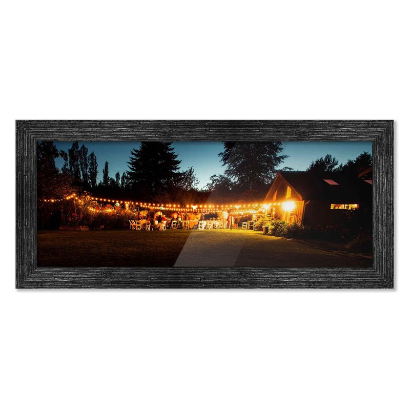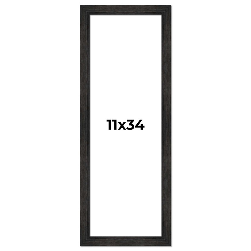 11x34 Frame Black Barnwood Picture Frame - Modern Photo Frame Includes UV Acrylic Shatter Guard Front, Acid Free Foam Backing Board, Hanging Hardware Wood Wall Frames for Family Photos - no Mat