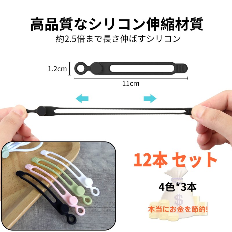 - 【パッケージ内容】UMUST シリコン配線バンドを4色 12本セットパッケージし、お好みに応じて自由に使えます。 シリコンワイヤバンドをお探しの場合は、 気軽にお買い求めください。