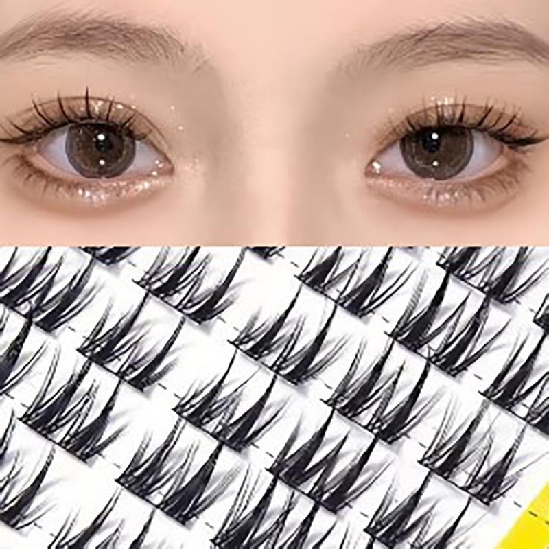 12列/78クラスターの3D効果のあるグラフトまつげ、ふっくらとした爆発的なダブルチップDIYまつげエクステ、ウィスピーアイメイク