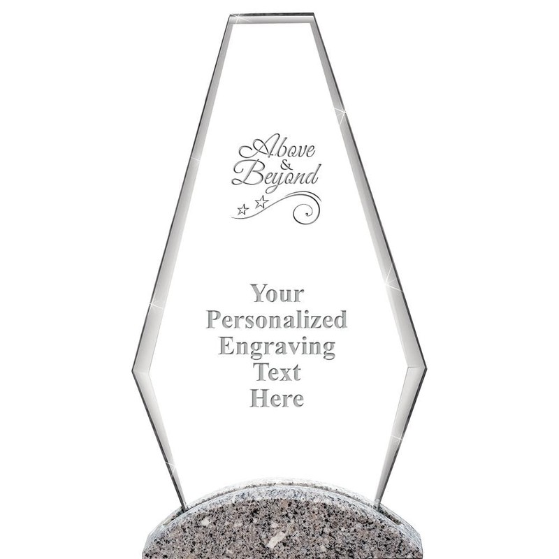12" Above and Beyond Custom Engraved Paleo Marble Base Crystal Trophy Corporate Award with Personalized Engraving