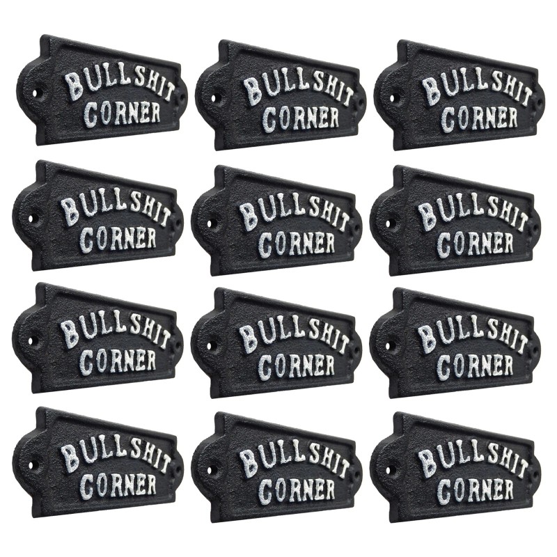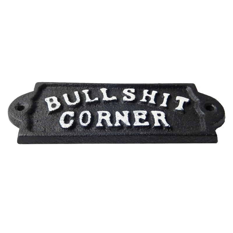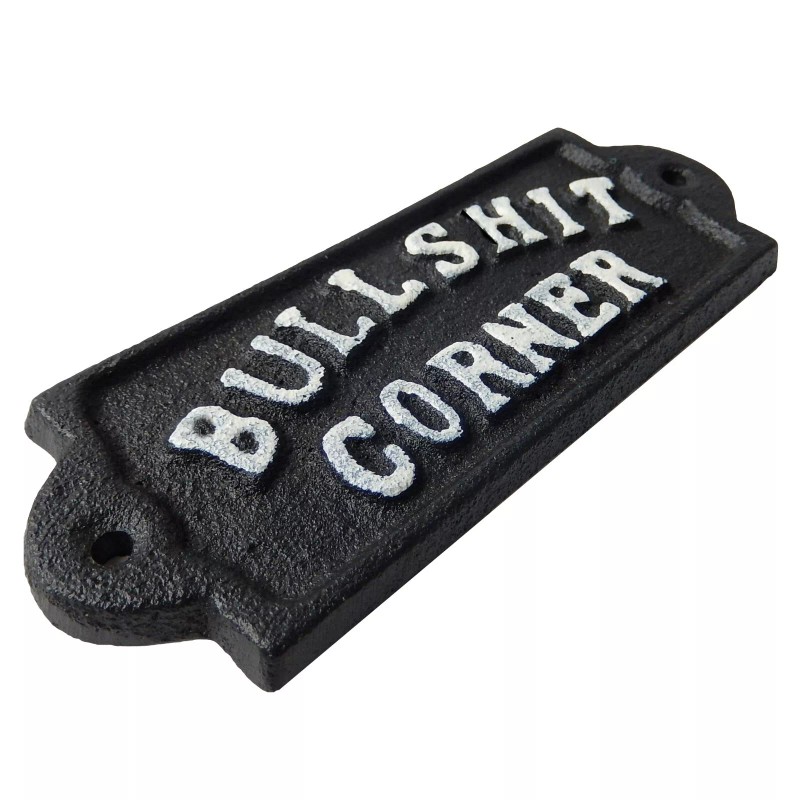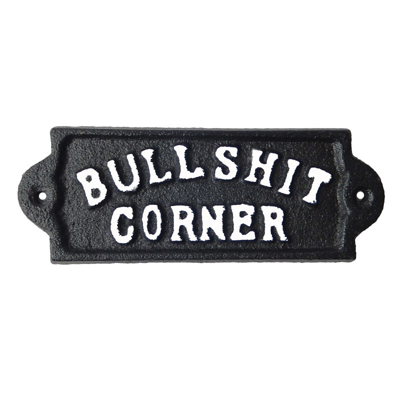 12 Cast Iron Bullshit Corner Sign Man Cave Decor Plaque Embossed Black & White