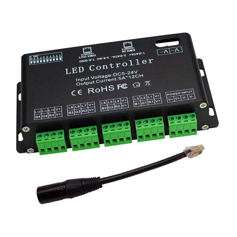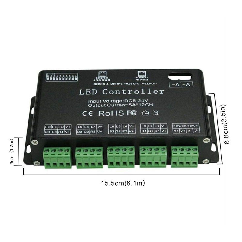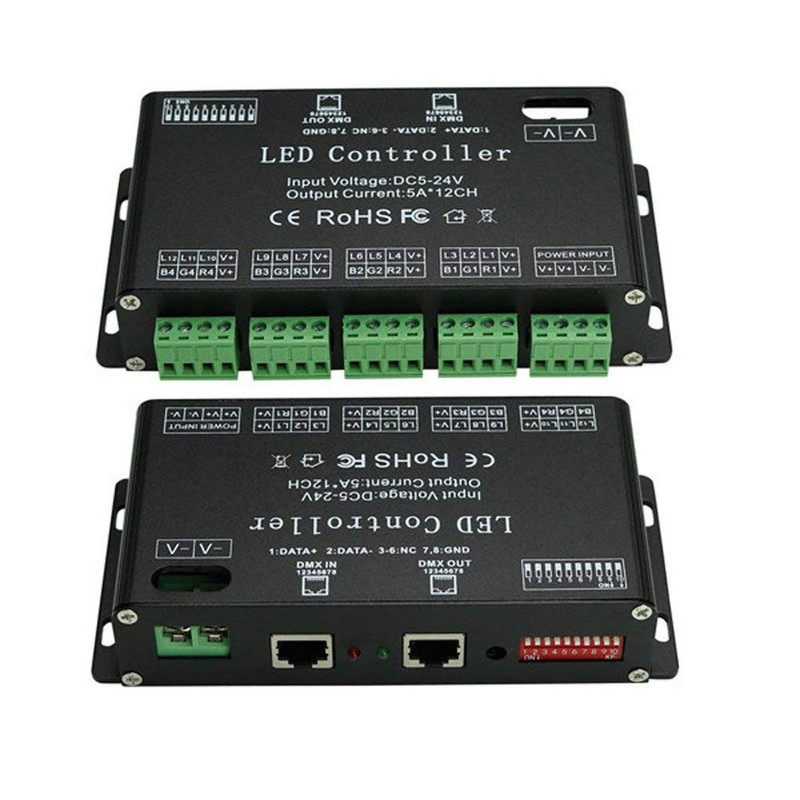 12 Channel DMX Decoder, AZIMOM RGB LED Light Strip Controller dmx512 Decoder Dimmer Driver DC5V-24V LED Module Light