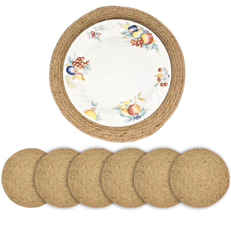 12 Inch Round Jute Placemats Set of 6 – Boho Rustic Woven Table Mats, Heat Resistant & Easy to Clean, Handwoven Farmhouse Table Decor for Dining, Kitchen, Weddings & Home
