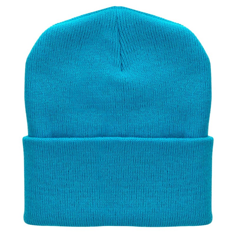 12 Inch Solid Long Beanie Made in USA - Aqua OSFM