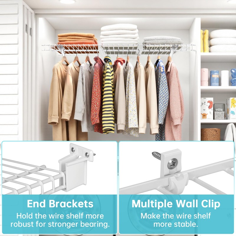 • PACKAGE INCLUDED: PERONU package includes 3 wire rack support brackets, 6 wire shelf clips, and 2 end brackets, all compatible with 12-inch wire racks to optimize your storage space,no additional accessories are needed.