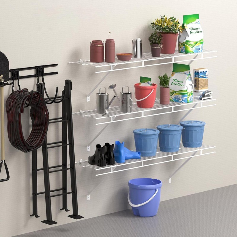 Perfect for use in bedrooms, living rooms, garages, kitchens, and more. This sturdy support system enhances shelf stability, providing secure storage for a wide range of items.