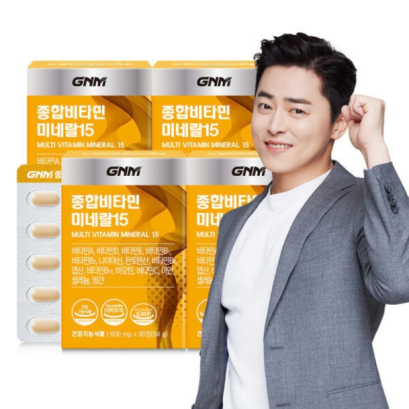 (총 12개월분) 종합비타민 미네랄 15 90정 4박스 멀티비타민 비오틴 아연 엽산 비타민B C D