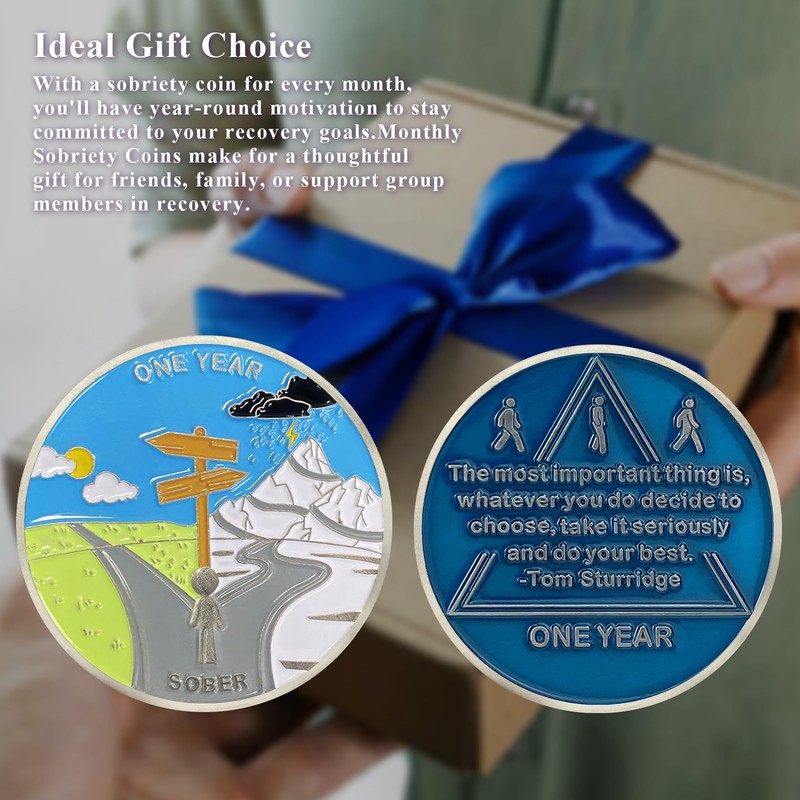 - Celebrate Sobriety: Celebrate the incredible milestone of 1 year of sobriety with our unique 3D crafted sobriety chips. AA coins serve as a reminder of your accomplishment, giving you strength and determination on the road to recovery