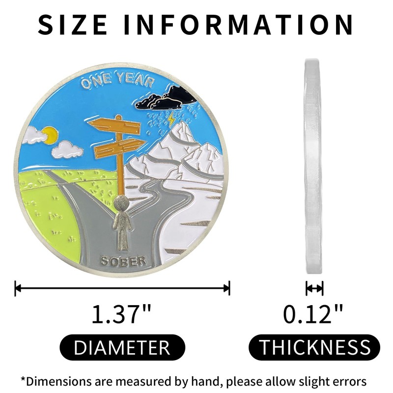 - Meaningful Design: 1 year sobriety coin features an engraved design on one side, symbolizing the start of a sober journey and the length of sobriety. The other side showcases an inspirational quote "The most important thing is, whatever you do decide to choose, take it seriously and do your best" by Tom Sturridge, encouraging bravery on the path to sobriety