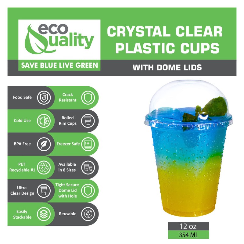 EcoQuality 12oz Clear Disposable PET Cups with Dome Lids