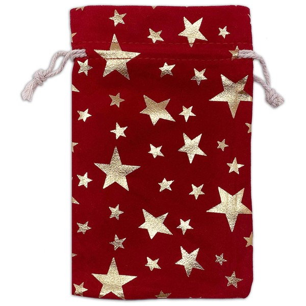 12-Pack 4x6 Red Velvet Gift Bags with Drawstring - (Gold Stars, Small) - Christmas Presents, Party Favors Pouches by TheDisplayGuys
