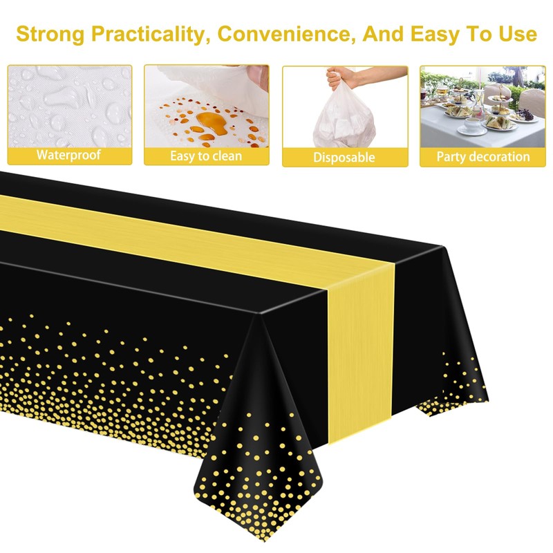 - Tablecloth and Runner Set: You will receive 6 disposable table cloths and 6 black gold tablecloths; There are enough quantities and sizes to decorate your table to meet your daily needs