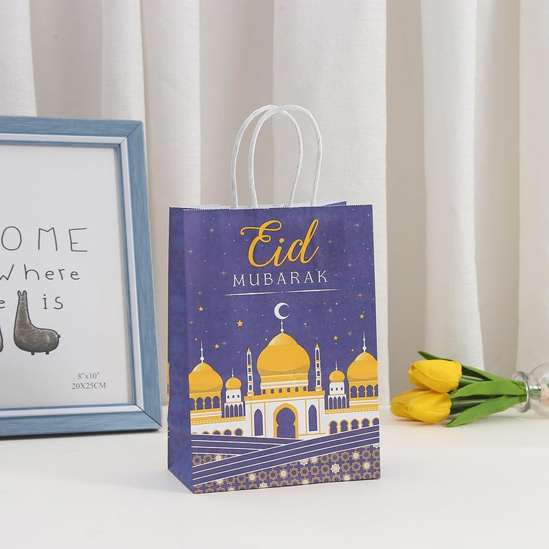 - Eid Mubarak party supplies: you can use gift bags for Ramadan party favors for treats, biscuits, snacks, small prizes, favor bags, goody bags, and small gift bags, the Ramadan Mubarak theme is great for an Eid Mubarak, Eid al-Adha day
