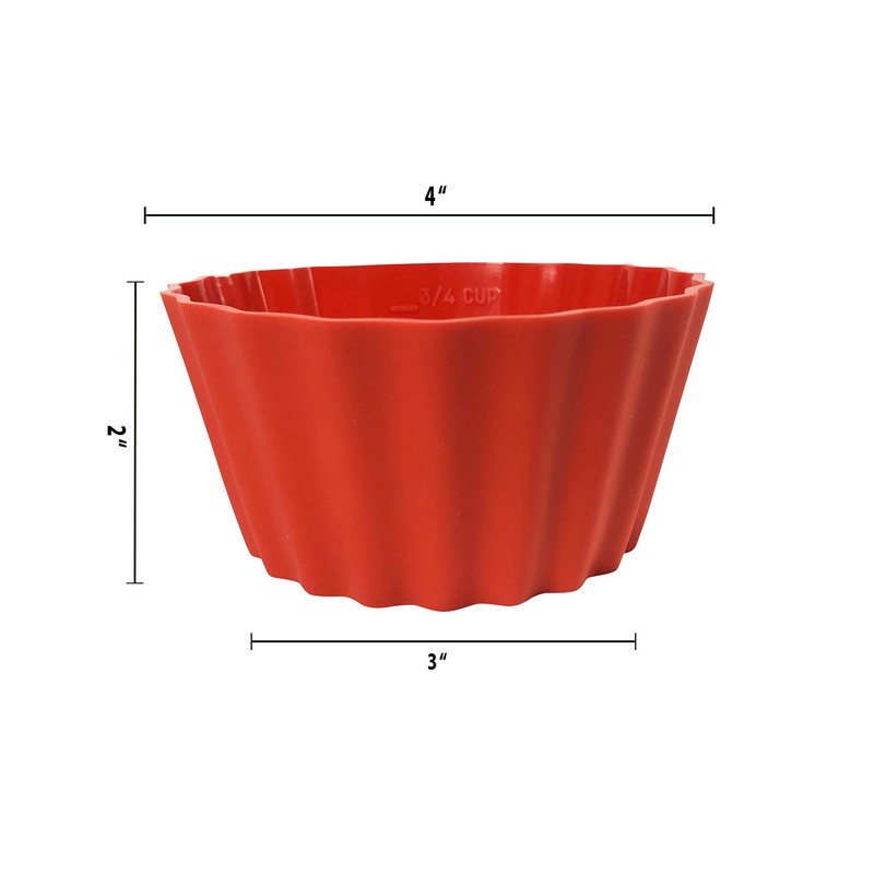 12 Pack Measured Baking Cups Jumbo Silicone Muffin Cup Reusable Non-Stick Liners Easy To Read Measurements Four Colors Flexible Durable Microwave & Dishwasher Safe by Baking Made Easy