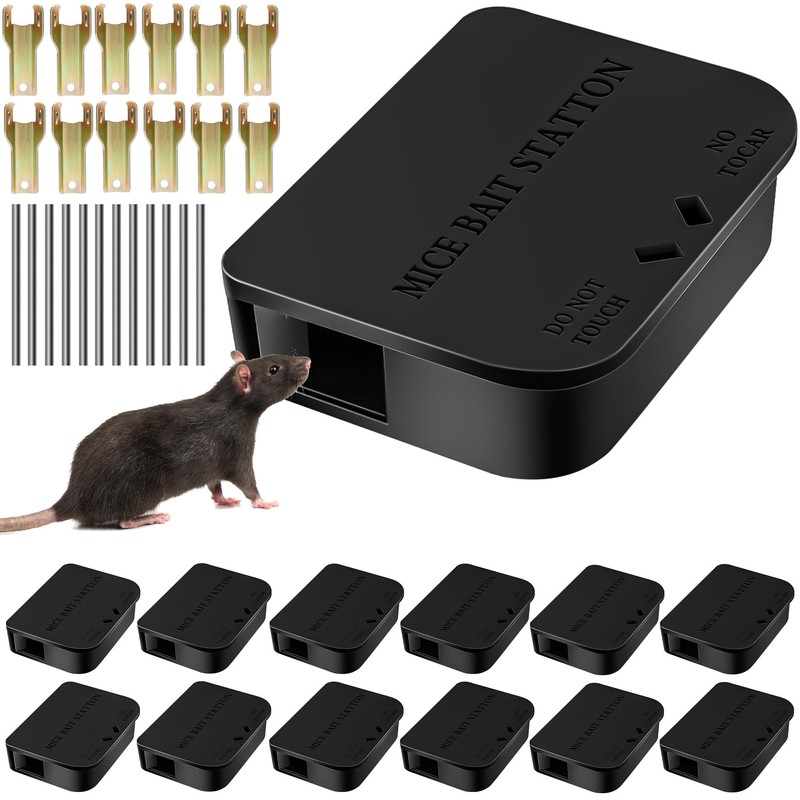 - 12 Pack Mouse Bait Stations With 12 Keys: Our professional mouse repellent set comes with 12 pack rat bait stations and 12 keys. We designed this dual entry mouse bait station based on the fact that rats like to drill holes. Place the bait inside this sturdy rat station to effectively protect your home from rodents. No more rats chew wires or build nests in your home. Bait Not Included