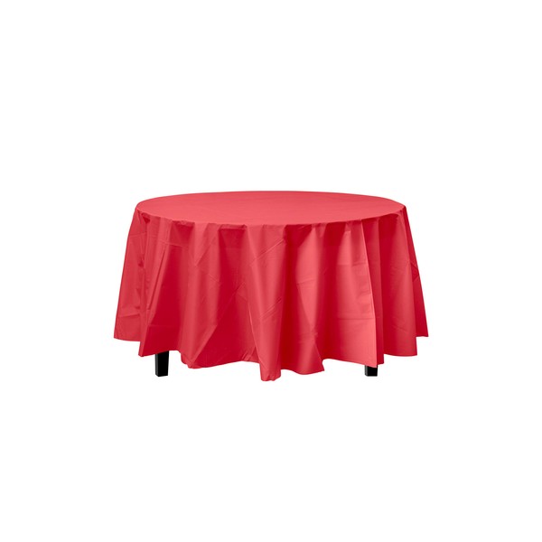 - PREMIUM QUALITY PROTECTION: This 12 pack of 84 in. Red Round plastic tablecloths will cover any table up to 7 feet. Unlike your typical paper table clothes these disposable table covers for parties are spill and waterproof!!!