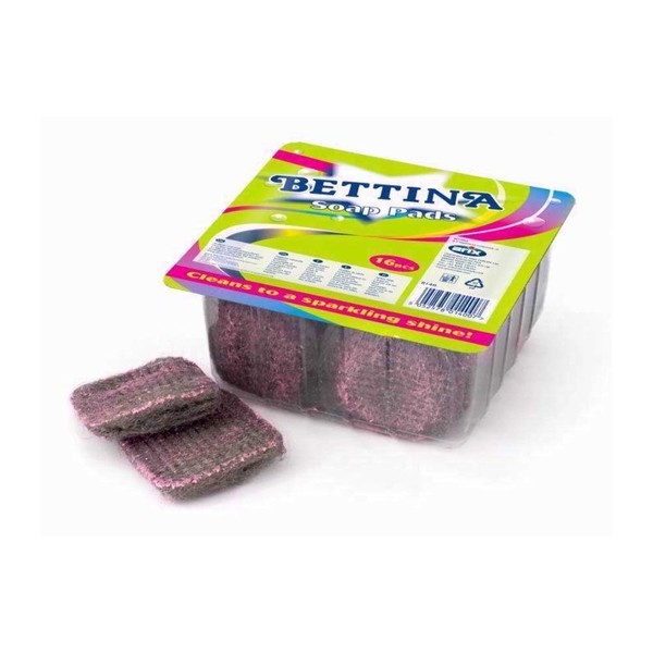 - Pack of 16 soap pads; Fine steel wool is tough on stubborn stains