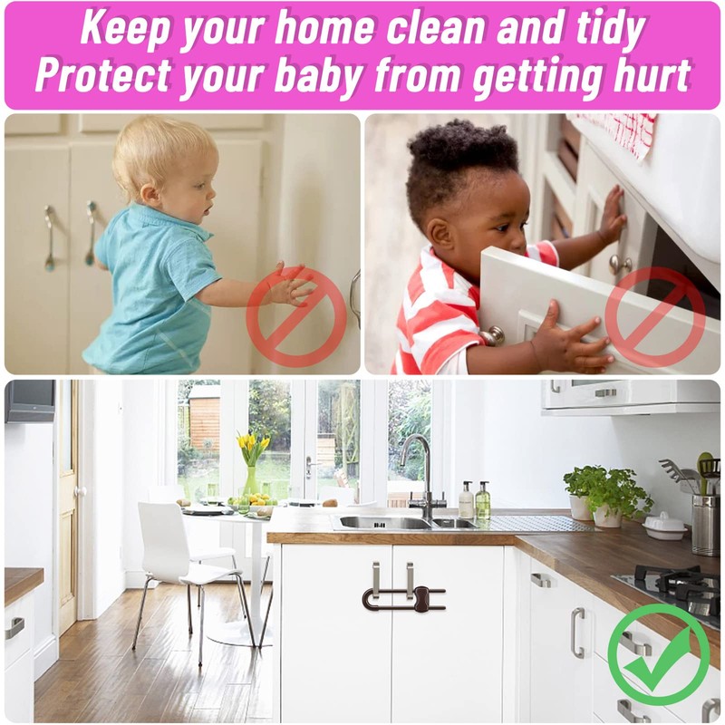 - 🔒【Wide Compacitility】The sliding cabinet locks are suitable for all kinds of mushroom-shaped knobs, D-shaped or annular handles, cupboards, closet dressers, and more, can be applied in the kitchen, bathroom, living room, bedroom, etc. protecting your baby from harmful items.