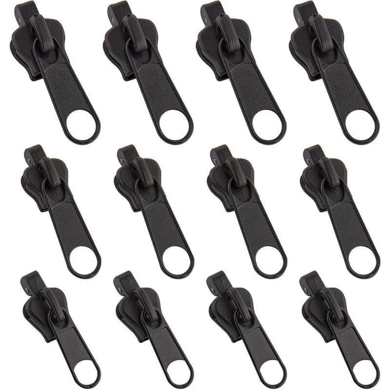 12 Pcs Black Fix Zip Puller -3 Sizes Zip Slider Repair Kit -Zipper Set for Jacket,Luggage,Backpacks Practical Accessories Travel -Kit Fix Black Zipper Rescue