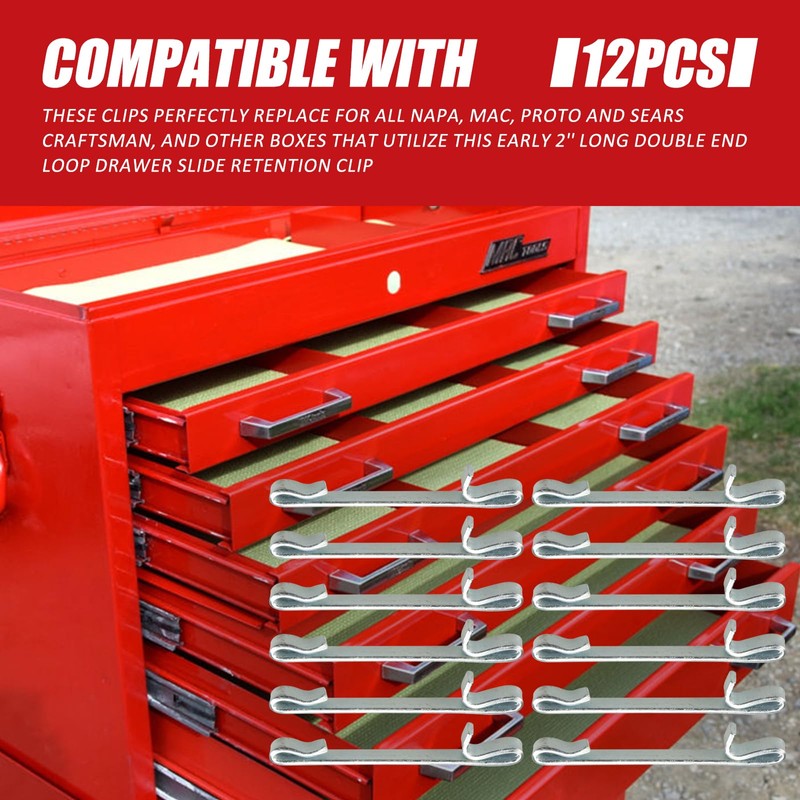 12 Pcs Early 2'' Double Loop Style Tool Box Drawer Slide Retaining Keeper Clips for Napa Mac Matco Proto Sears Craftsman Toolbox