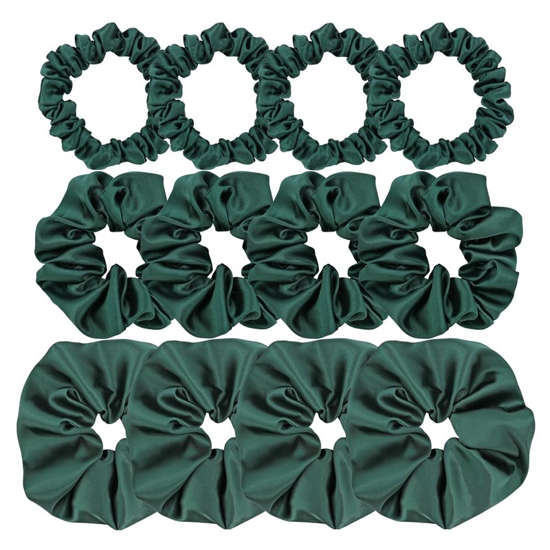 12 Pcs Mix 3 Sizes Satin Silk Scrunchies Hair Ties for Women Girls Bracelets Ponytail Holder Hair Bands Elastic Ropes Hair Bun Accessories (3 Sizes Bundle 12Pcs-Spruce)
