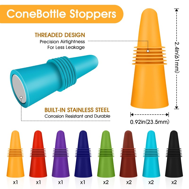 - Easy to Use: The ergonomic conical design makes the insertion and removal of bottle stoppers easy and simple. You just need to press lightly, and the bottle stopper will tightly fit the bottle mouth