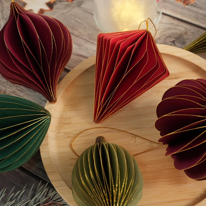 - Exquisite Glitter Accents: Measuring approx 3"x3.94", these 3D paper honeycomb lanterns feature 9 different shapes—from lanterns to balls—with shimmering glitter edges that sparkle under holiday lights. The mix of traditional forms and classic colors adds texture and dimension, helping you create a timeless Christmas look full of warmth and whimsy