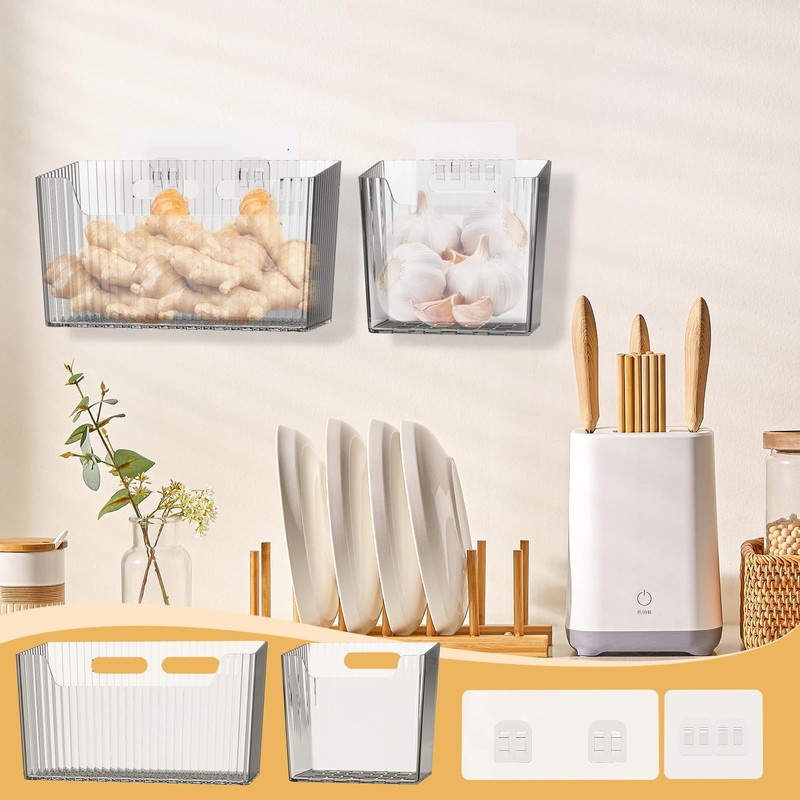 Crafted from durable clear plastic, these wall-mounted storage bins feature an elegant design that seamlessly blends into any decor. The lightweight yet sturdy construction ensures they hold up well while keeping your items visible and accessible. Ideal for organizing makeup, toiletries, kitchen utensils, or pantry supplies, these bins offer endless possibilities.