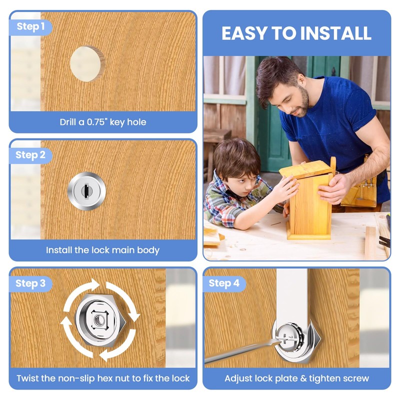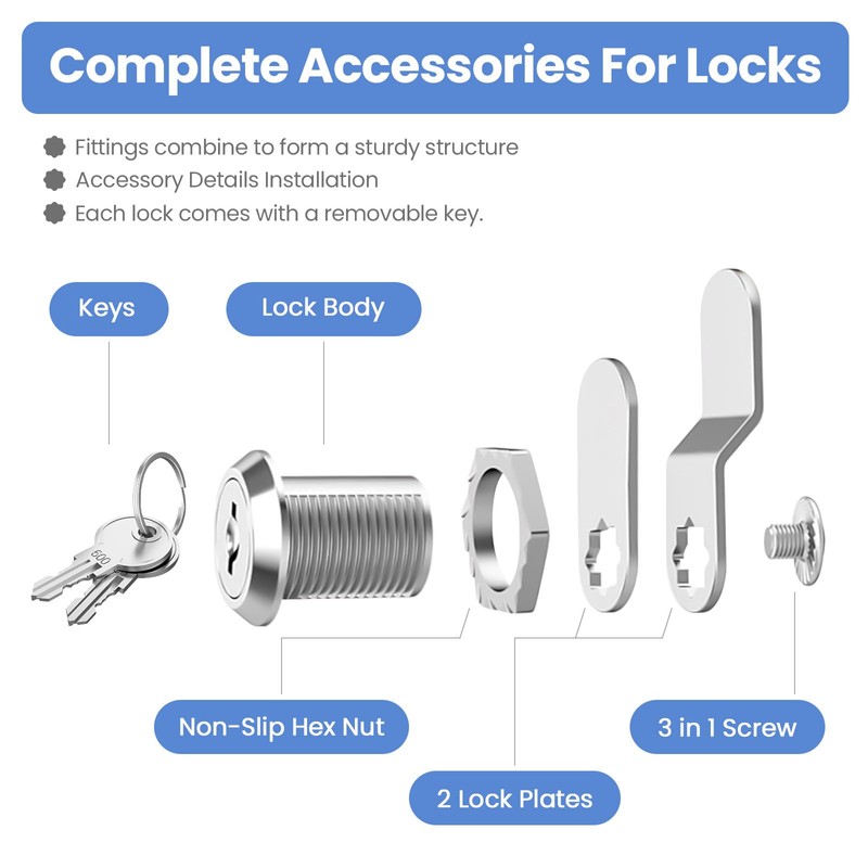 - ππππ¦π¬ ππ‘π¦π§πππππ§ππ’π‘ πππ ππ’πππ¦ ππ’π₯ πππππ‘ππ§π¦π: Our toolbox locks with keys are easy to install, making them a convenient choice for anyone looking to upgrade their security. Whether you need mailbox locks with keys replacement or drawer locks with keys, these cam locks for cabinets are the perfect solution for your locking needs.