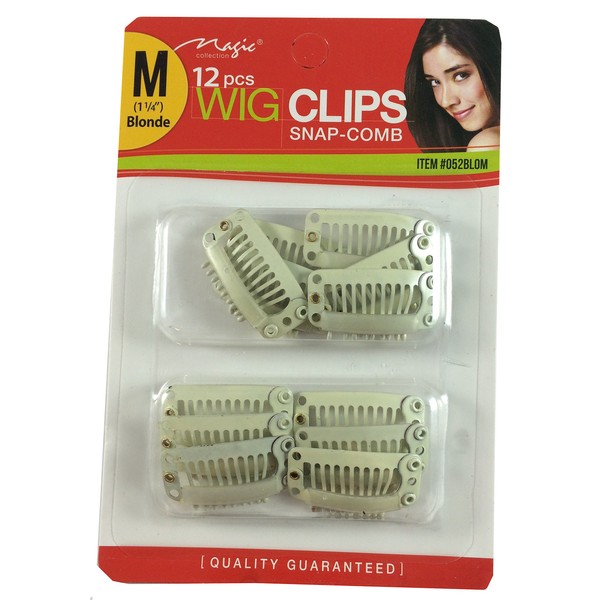 12 pcs Wig Clips Snap Comb Large 1 1/4 Medium (Blonde) by Magic Collection