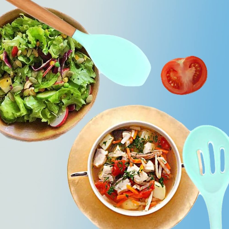 - 【About Product Design】: silicone material, high temperature resistance, not easy to damage the pots and pans; wooden handle, fit the palm, extended design, not easy to burn your hands, use a long time without fatigue.