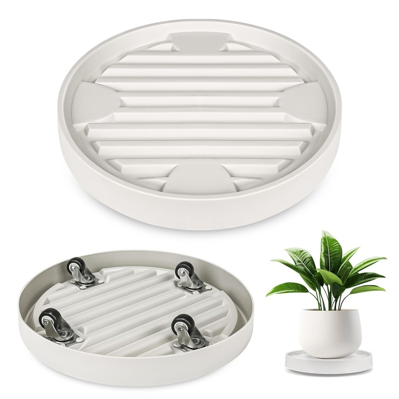 Dcpes Plant Caddy with Hidden Wheels, 4 Invisible Caters, Rolling Plants Stand with Wheel Dolly, Wheeled Planter Roller Base, Indoor Pots Holder Tray Plants Pallet, 12Inch, Beige, 2Pack