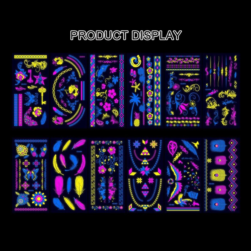 - Perfect for Rave Festival: These glow in the dark tattoos are perfect for various occasions, such as Halloween makeup, costume parties, concerts, festivals, punk party, club, carnival, traveling, wedding, dancing, swimming the beach, vacations, pool, beach, dinner dress,music festival, night out, etc.