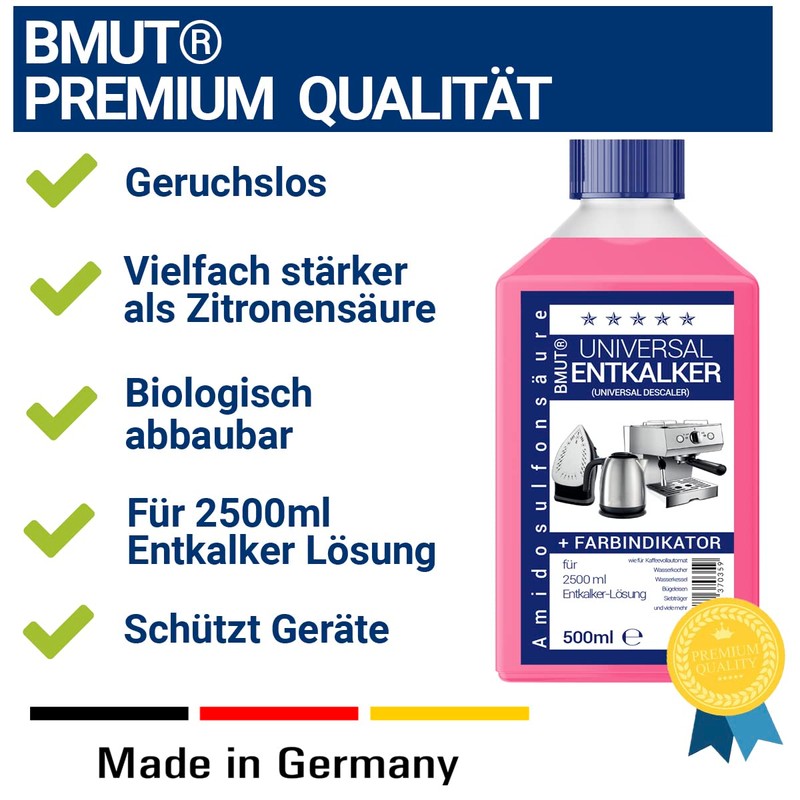 - ✔ [Made in Germany] Per bottle 500 ml capacity for 2500 ml descaler solution. 125 ml to 500 ml water. Continuous quality tests and laboratory controls ensure the high product quality.