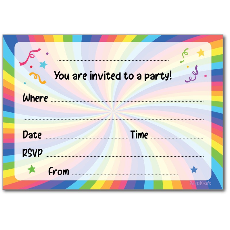 • 12 x Bright Rainbow Birthday Party Invitations