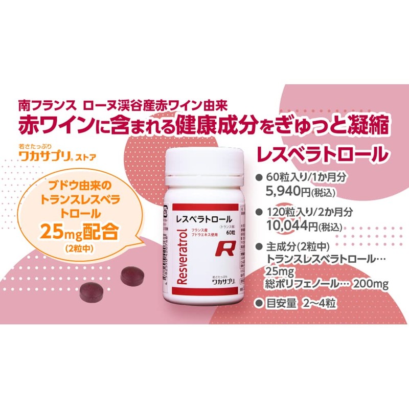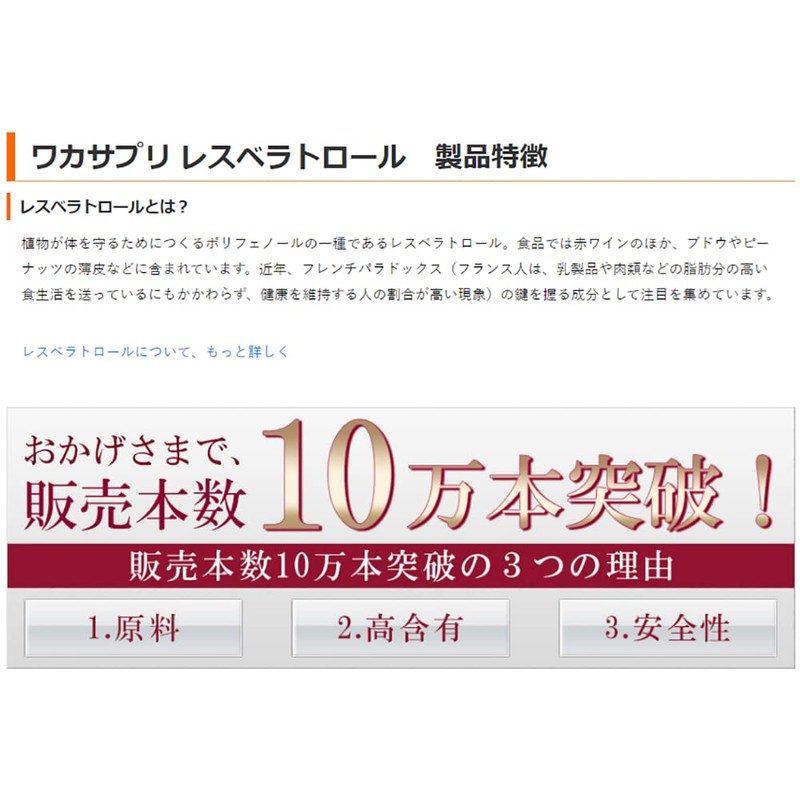 【ワカサプリ】レスベラトロール 120粒 2粒でトランスレスベラトロール 25mg 赤ワイン3本分 脂肪分の高い食生活を送っている方に サプリメント