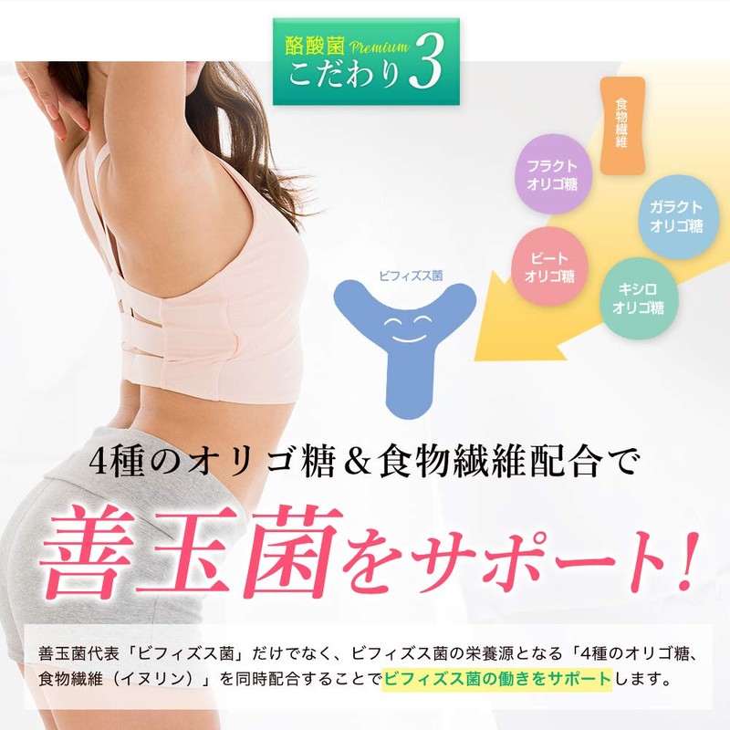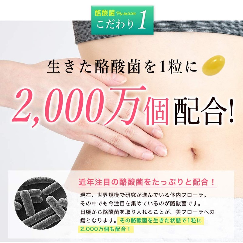 - 酪酸菌プレミアムはソフトカプセル1粒に国内産(長野県産)の酪酸菌を2,000万個(1袋に24億個)、ビフィズス菌、4種のオリゴ糖、酒粕発酵物、食物繊維(イヌリン)、ビタミンB群含有酵母を配合した 菌活 サプリ